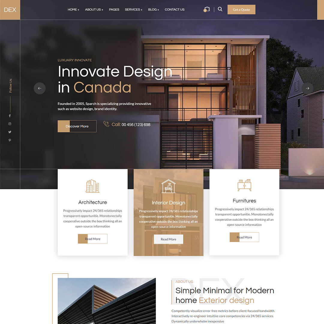 Model de website de prezentare din categoria design exterior .